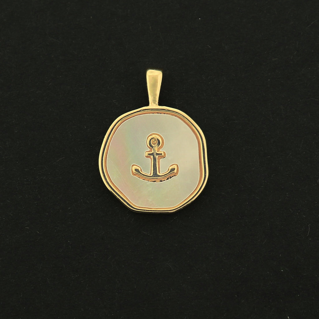 Check out these super cute anchor disc charms... made of 18k gold plated brass, they are finished with natural mother of pearl shell inlay.