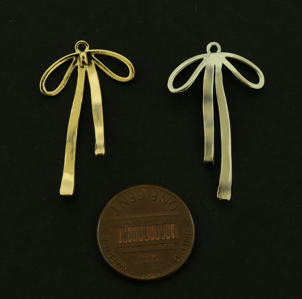 Check out these super cute bow or ribbon charms... They are made of brass, and can be ordered either 18k gold plated or platinum plated silver!