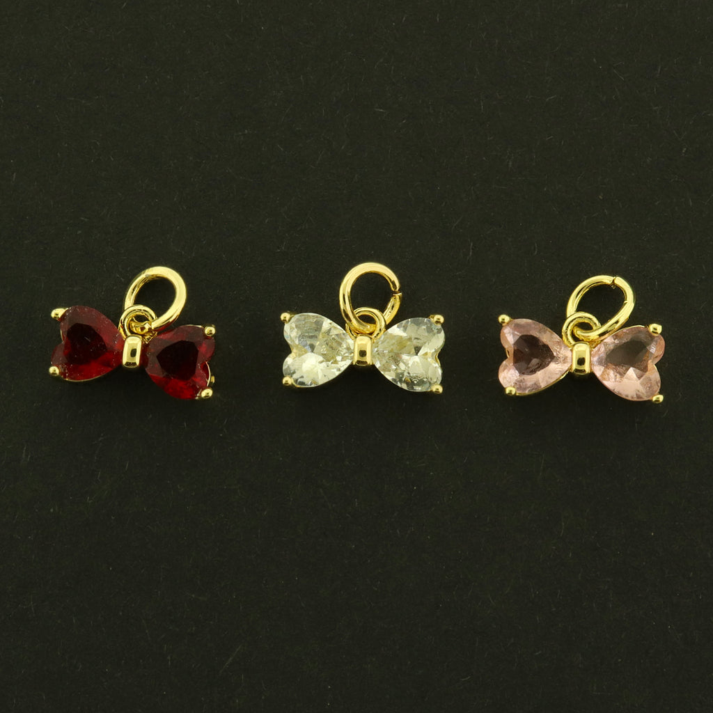 Check out these super detailed bowtie charms... made of 18k gold plated brass and finished with different color rhinestones. Choose from pink, clear, or red!