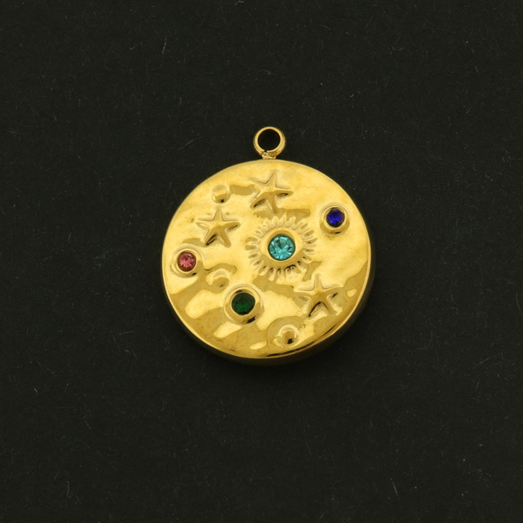 Check out these super detailed galaxy charms... made of 18k gold plated stainless , they are finished with inset colorful rhinestones!