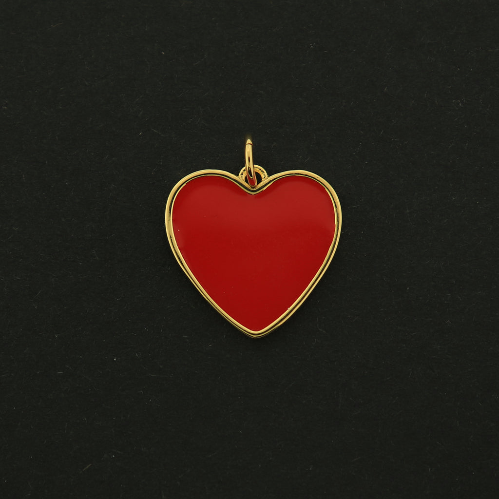 Check out these red enamel heart charms with an attached jump ring. They are made of 18k gold plated brass and enamel.