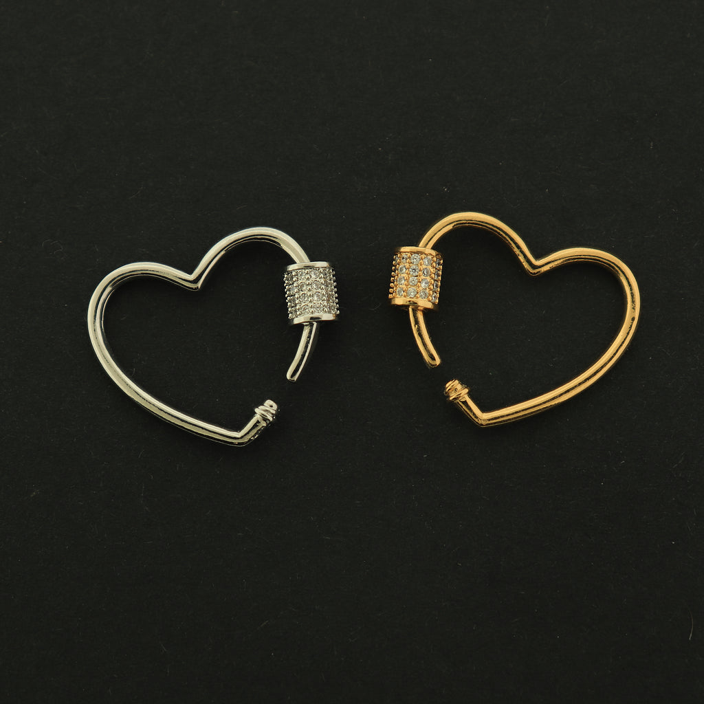 Check out these super cute heart shaped carabiner clasps... made with inset CZ rhinestones in the clasp. They are made of brass, 18k gold plated or rhodium plated for the silver.