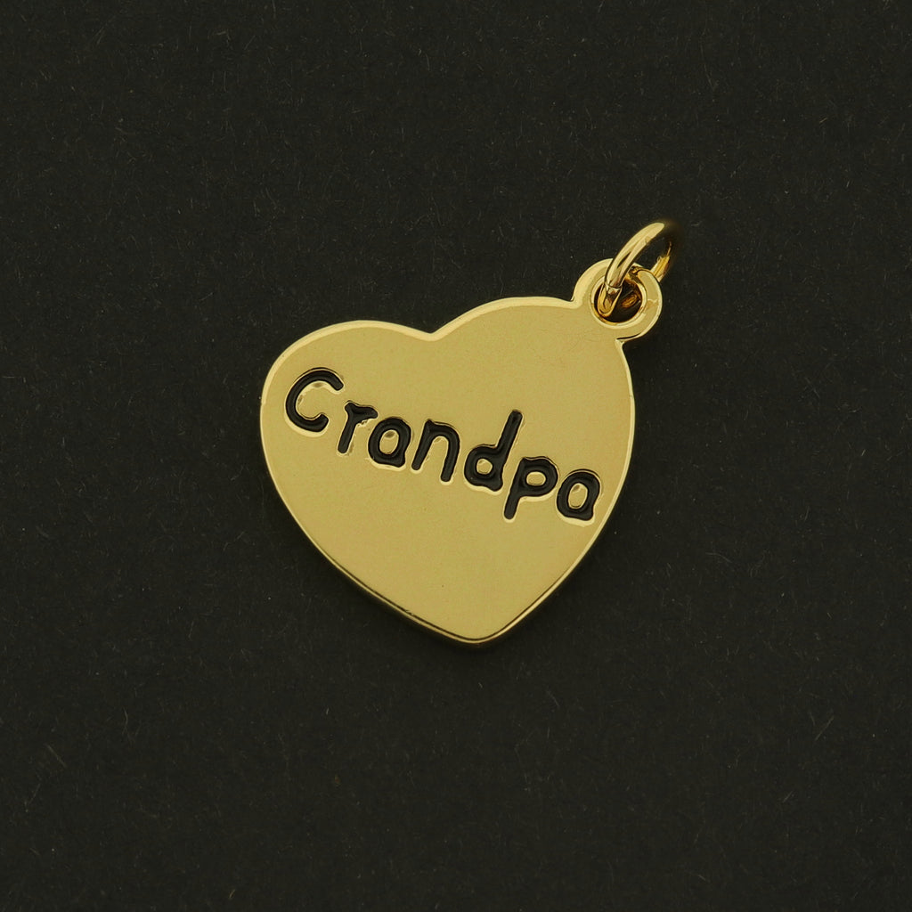 Check out these heart shaped Grandpa heart charms...made of 18k gold plated brass and finished with black enamel, they are a great additional to a personalized piece of jewelry.