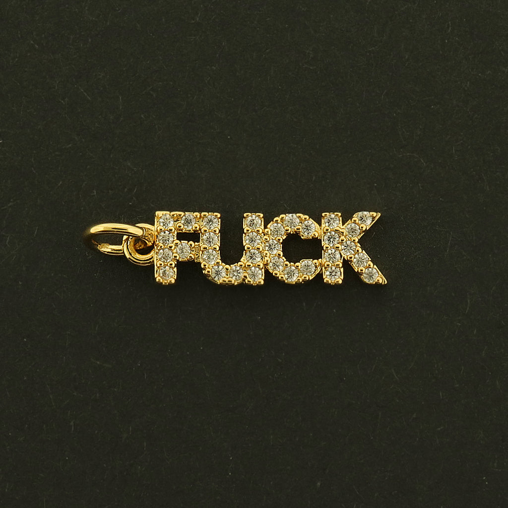 These make a statement... check out these 'fuck' charms, made of 18k plated brass with inset rhinestones.