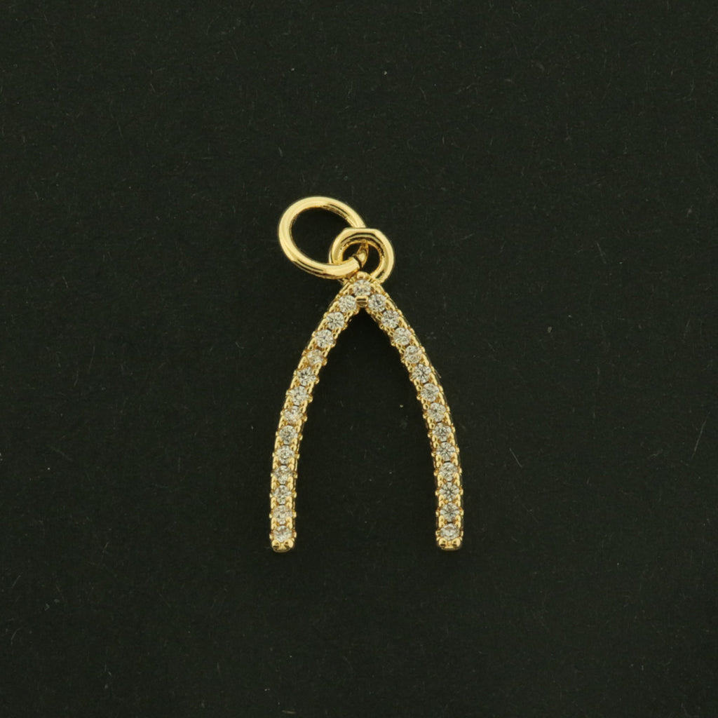 Check out these super eye catching wish bone charms...made of 18k gold plated brass and finished with a bunch of CZs!