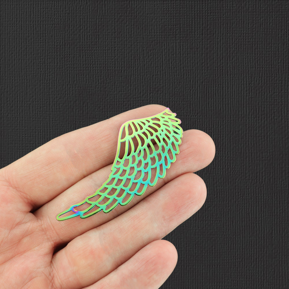 Filigree angel wings charms, in an rainbow electroplated copper.