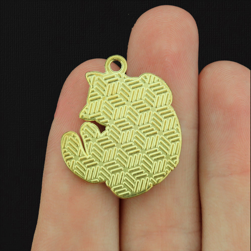 Black and white spotted cat gold tone charms, in a zinc alloy metal and enamel.