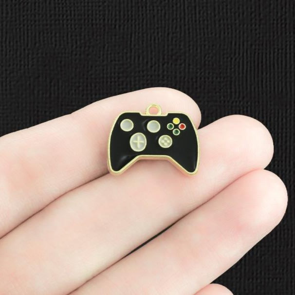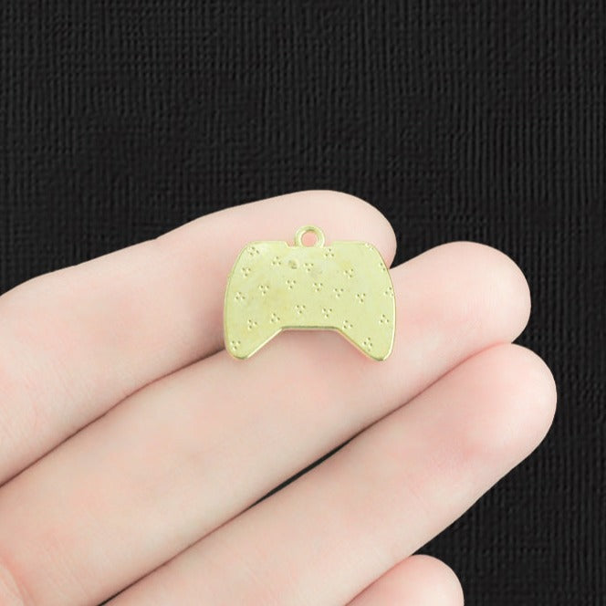 Video game controller gold tone charms, in a zinc alloy metal and enamel.