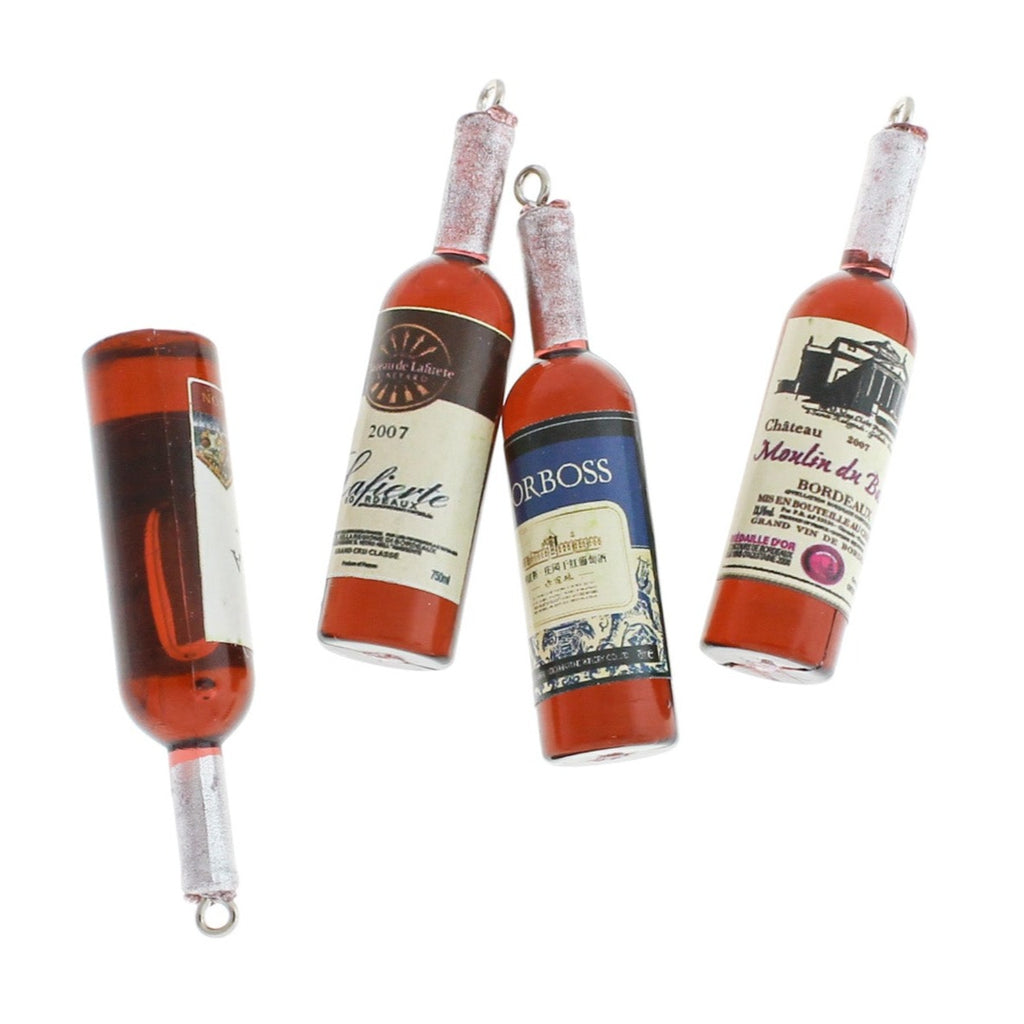Wine bottle charms with a silver tone loop, in resin. Available in black or red.