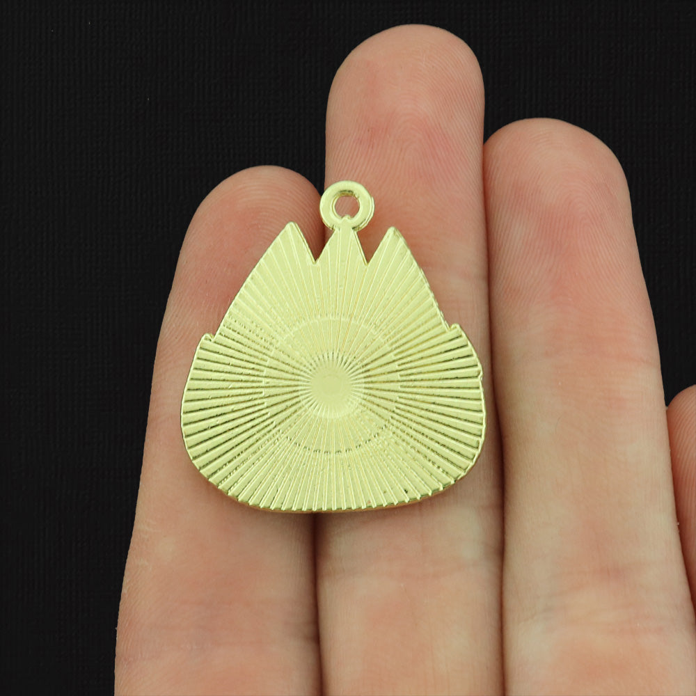 Mountains, forest, tent and campfire design gold tone charms, in a zinc alloy metal and enamel.