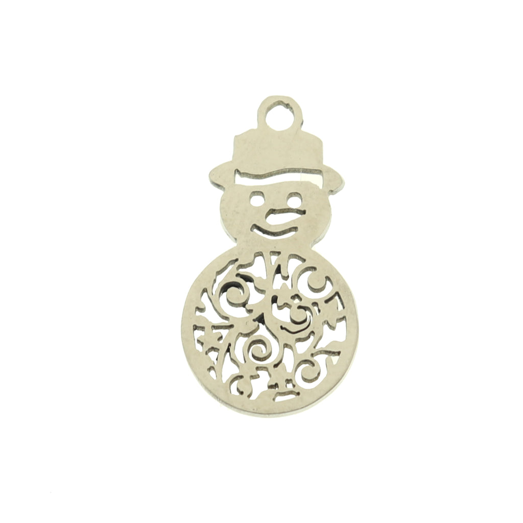 Snowman with filigree outline silver tone charms, in 201 stainless steel.