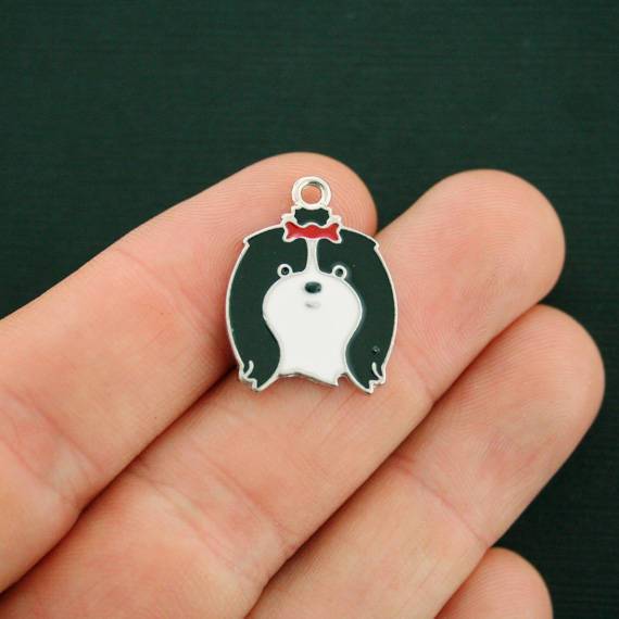 Shi Tzu silver tone charms, in a zinc alloy metal and enamel.