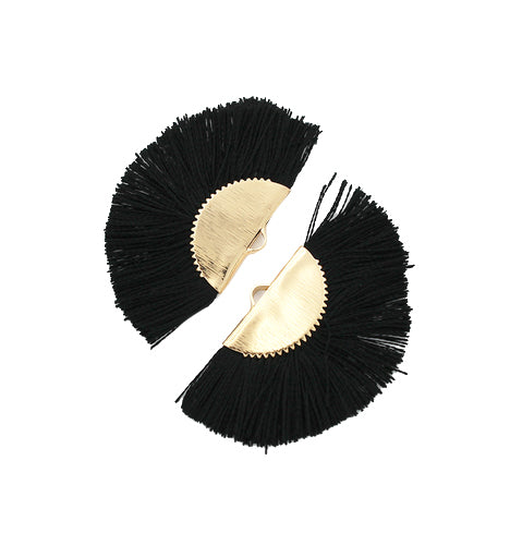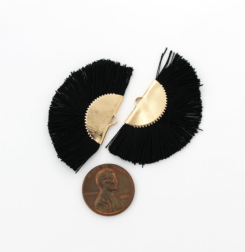 Rayon fan tassels with gold tone zinc alloy. Available in black or brown!