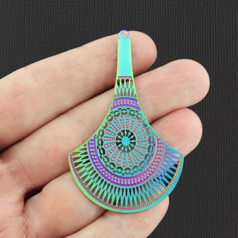 Filigree drop electroplated rainbow stainless steel charms.