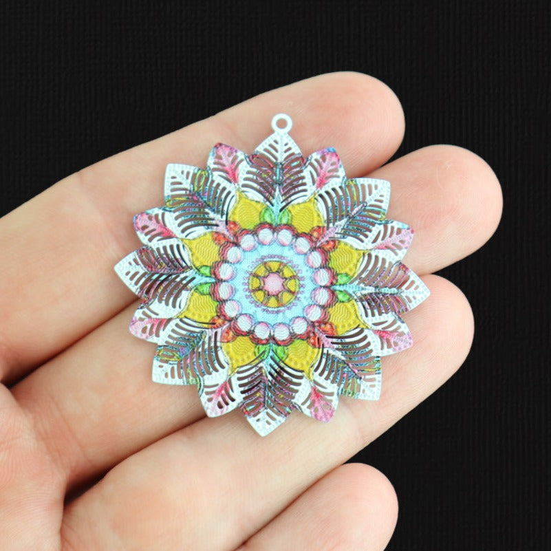 2 Mandala Floral Filigree Enamel Charms - E1544