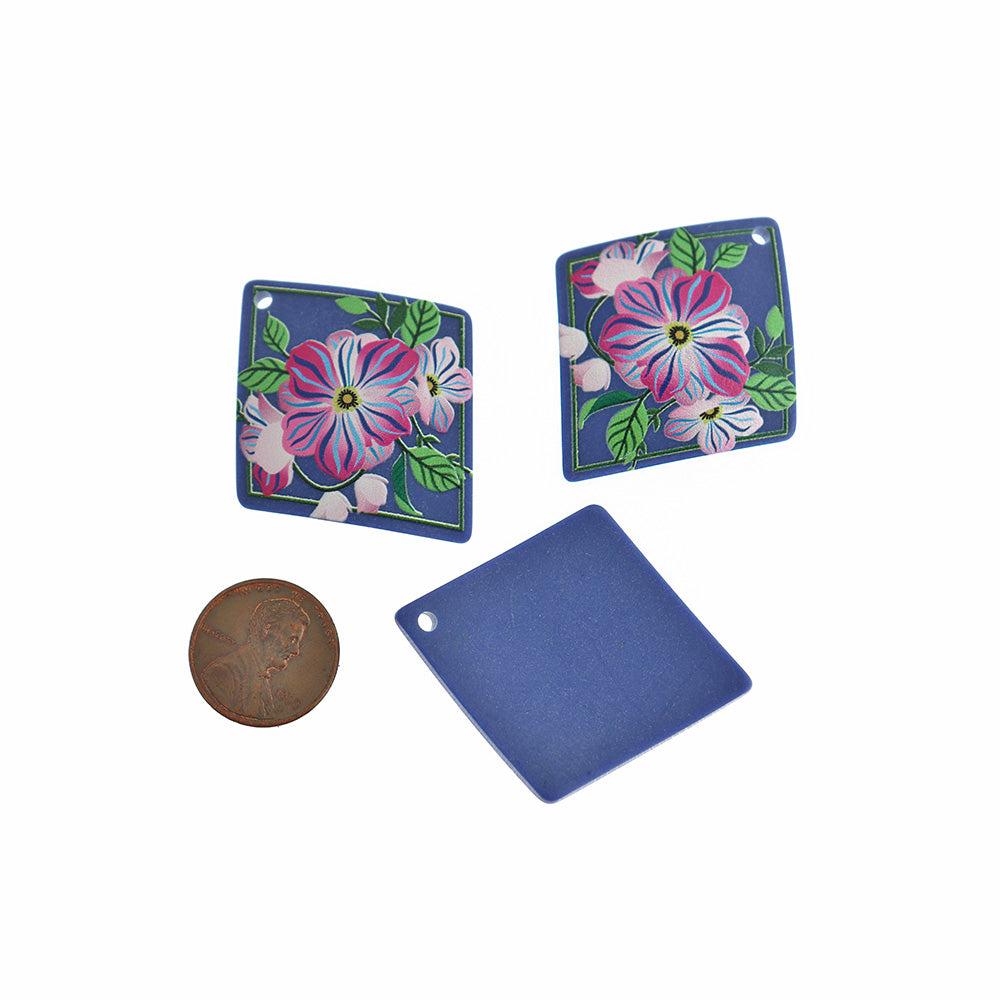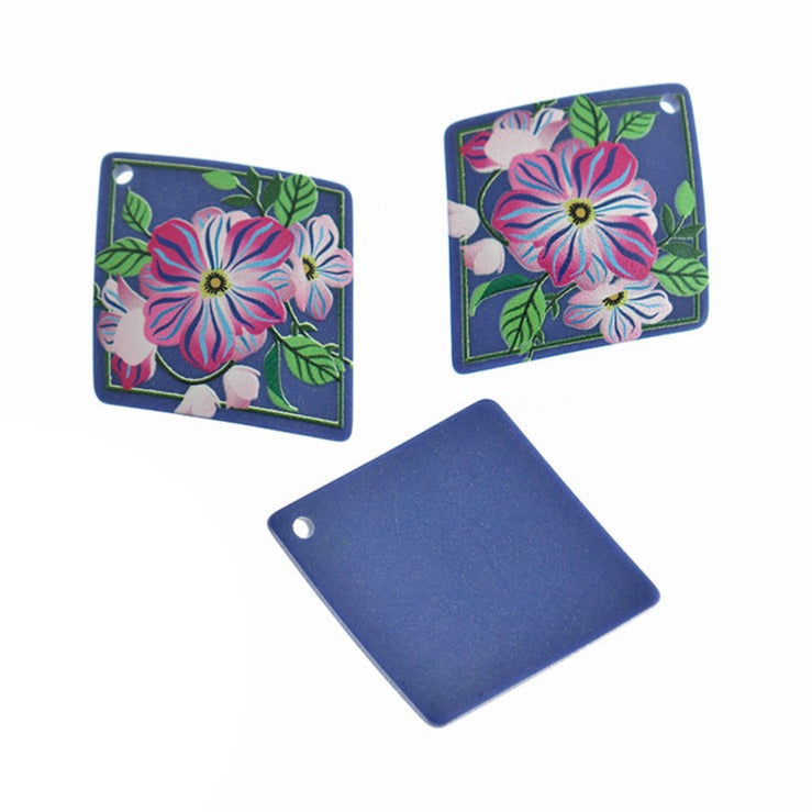 Geometric rhombus with pink flower charms, in acrylic.