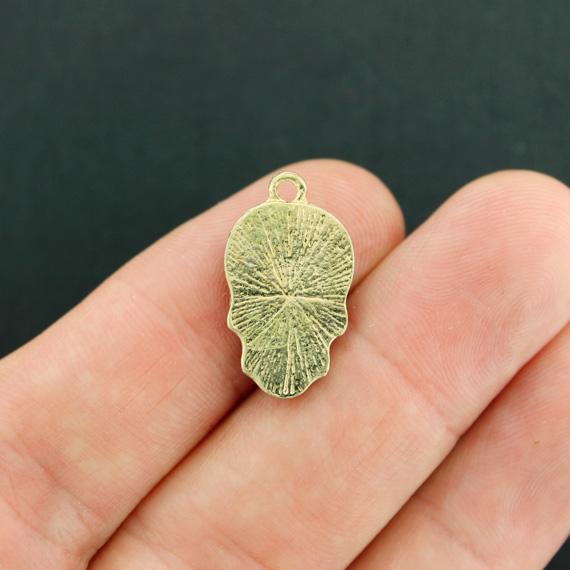 Floral skull gold tone charms, in a zinc alloy metal and enamel.