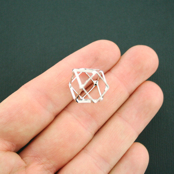 Hexagon prism antique silver tone charms, in a zinc alloy metal.