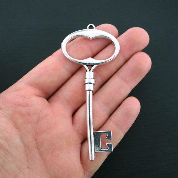 Skeleton key antique silver tone charms, in a zinc alloy metal.