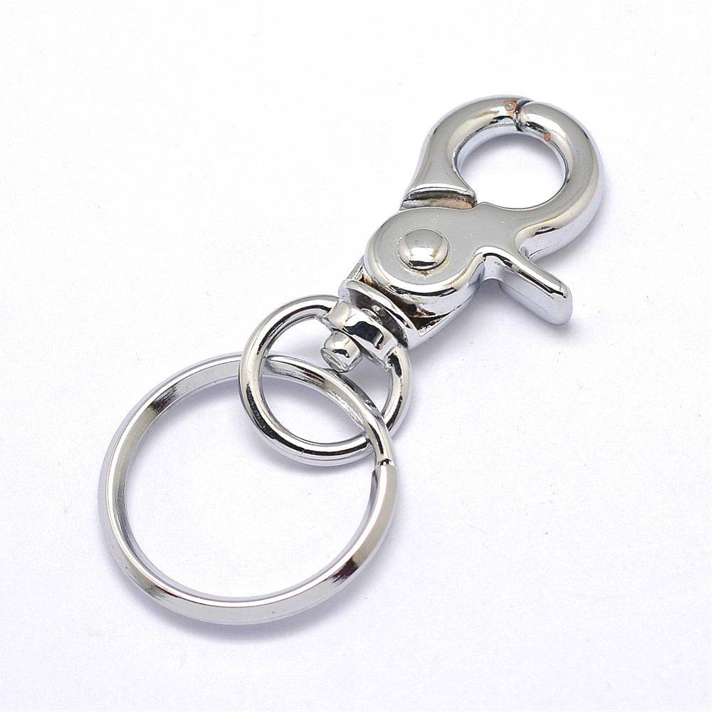 Silver tone swivel lobster clasp with key ring in a zinc alloy, the perfect base for your next key chain creation!