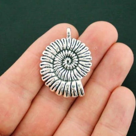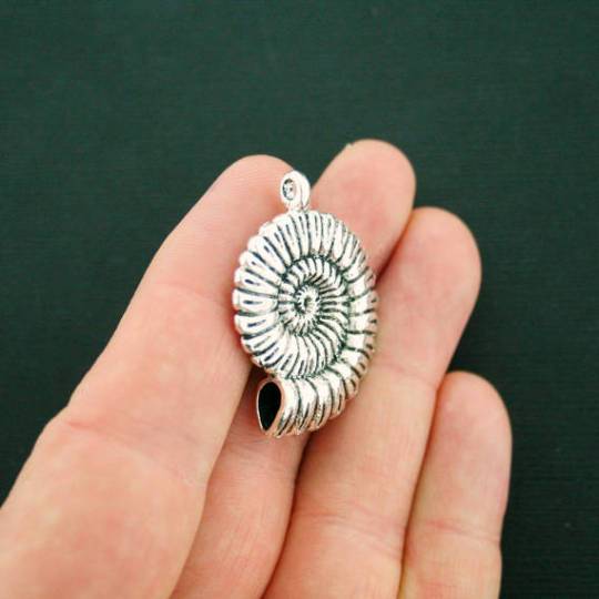 Sea shell antique silver tone charms, in a zinc alloy metal.