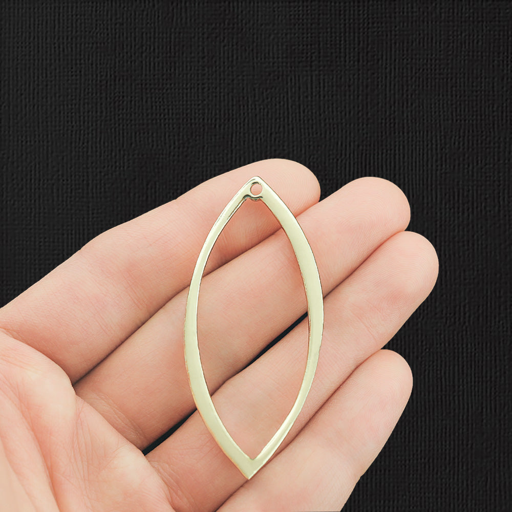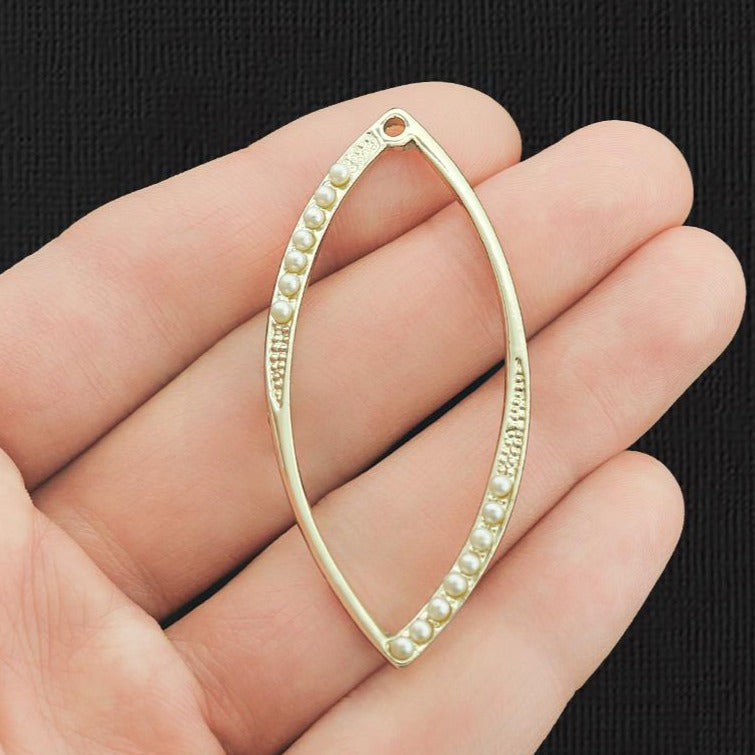 Pointed oval gold tone charms with imitation pearl, in a zinc alloy metal.