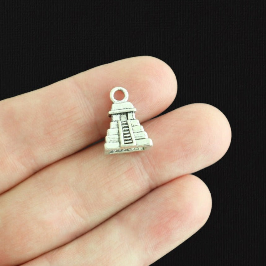 Mayan temple antique silver tone charms, in a zinc alloy metal.