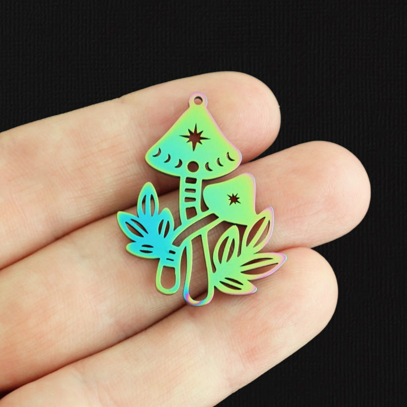 Mushroom with moon phase and stars cutout rainbow electroplated charms, in 304 stainless steel.
