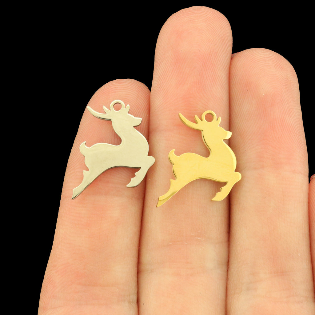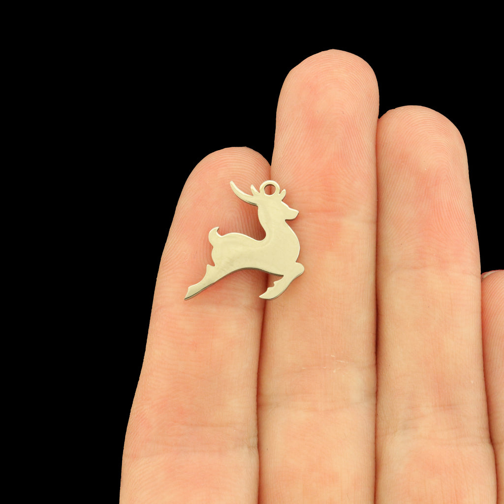 Santa's reindeer laser cut charms in stainless steel. Choose from silver or gold tone!