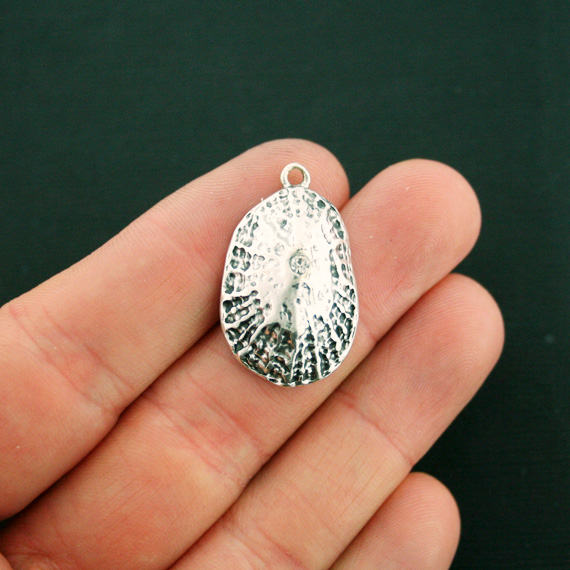 Sea shell antique silver tone charms, in a zinc alloy metal.