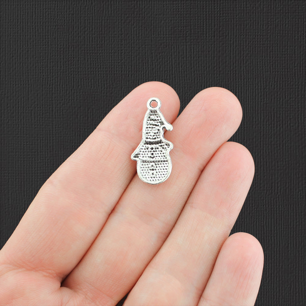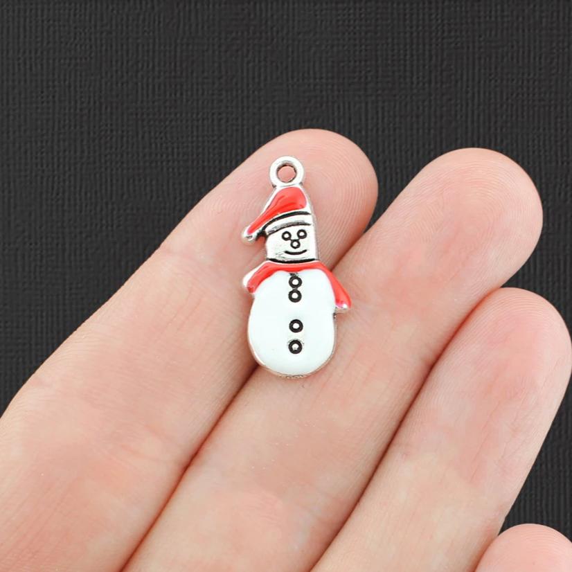 Snowman silver tone charms, in a zinc alloy metal and enamel.