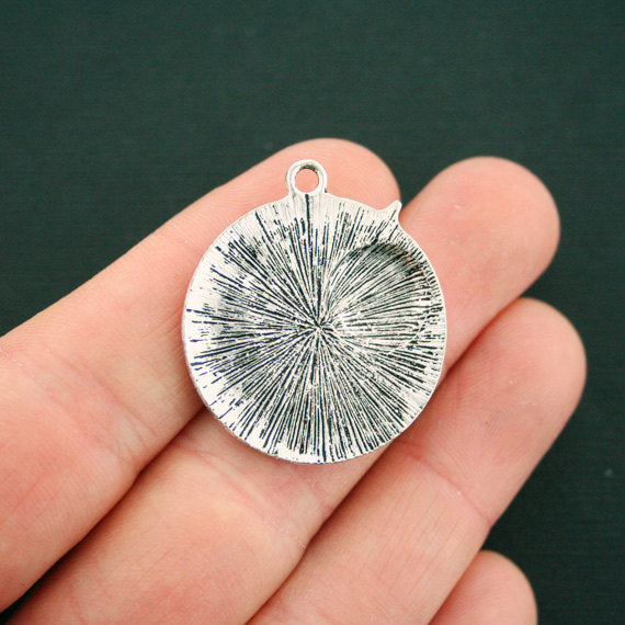 Crescent moon and sun antique silver tone charms with faux turquoise stone, in a zinc alloy metal.