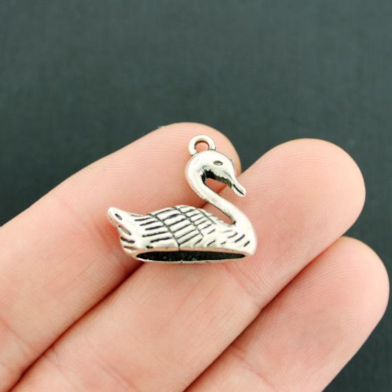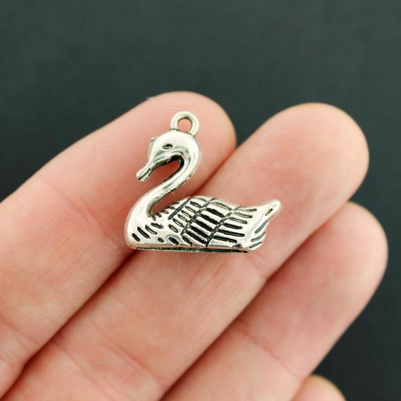 Swan antique silver tone charms, in a zinc alloy metal.