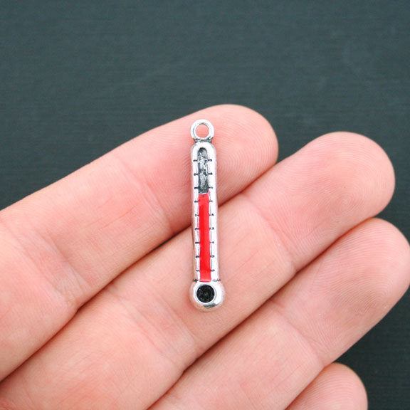 Thermometer antique silver tone and enamel charms, in a zinc alloy metal.