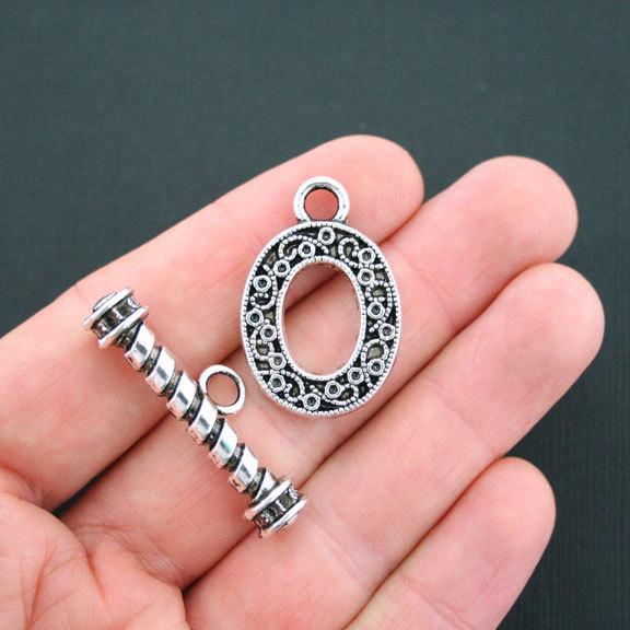 Toggle clasps silver tone, in a zinc alloy metal.