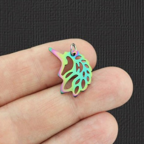 Unicorn head electroplated rainbow stainless steel charms with jump ring.