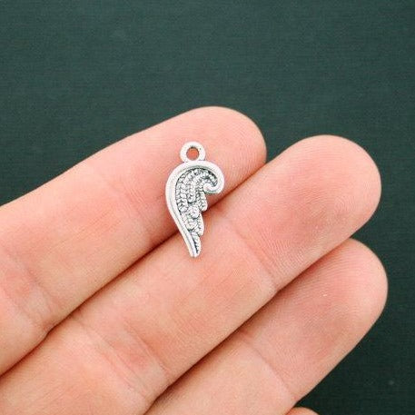 Angel wing antique silver tone charms, in a zinc alloy metal.