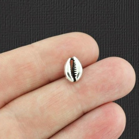 Cowrie shell antique silver tone charms, in a zinc alloy metal.