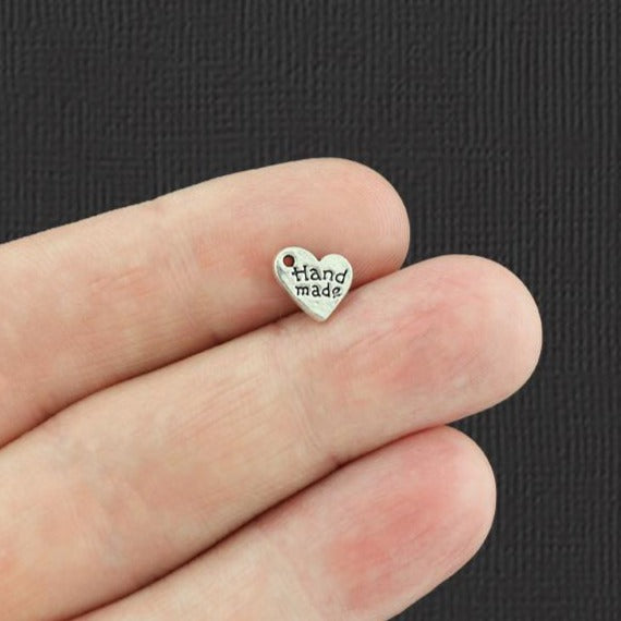 Heart with "hand made" antique silver tone charms, in a zinc alloy metal.