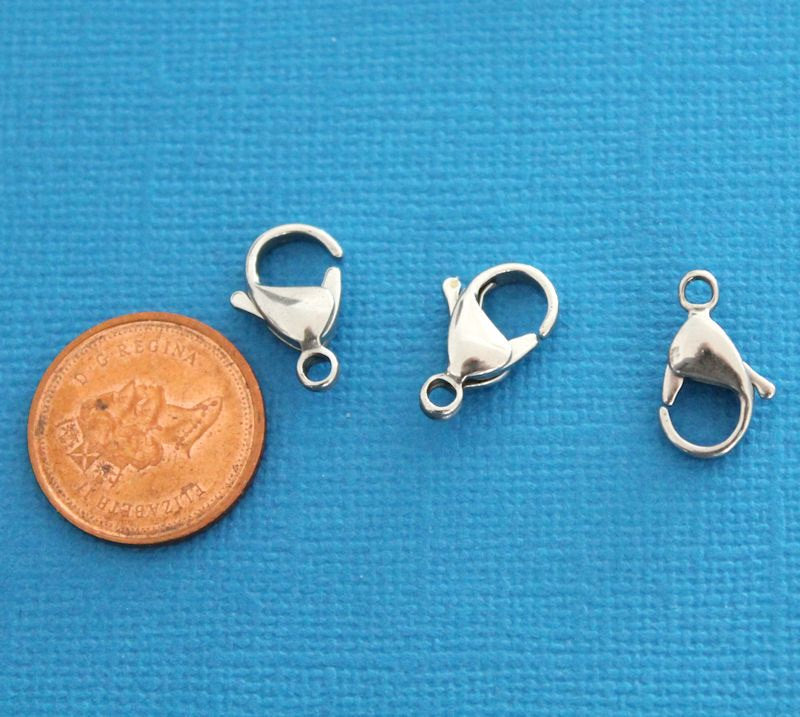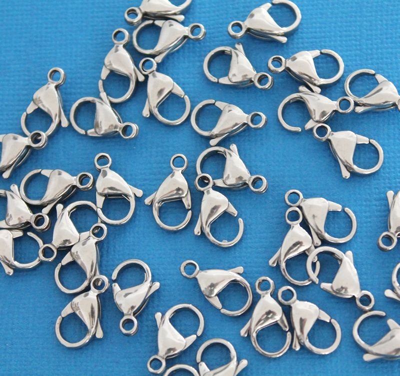 Silver tone lobster claw clasps in a stainless steel, an absolute staple for any jewelry making project!