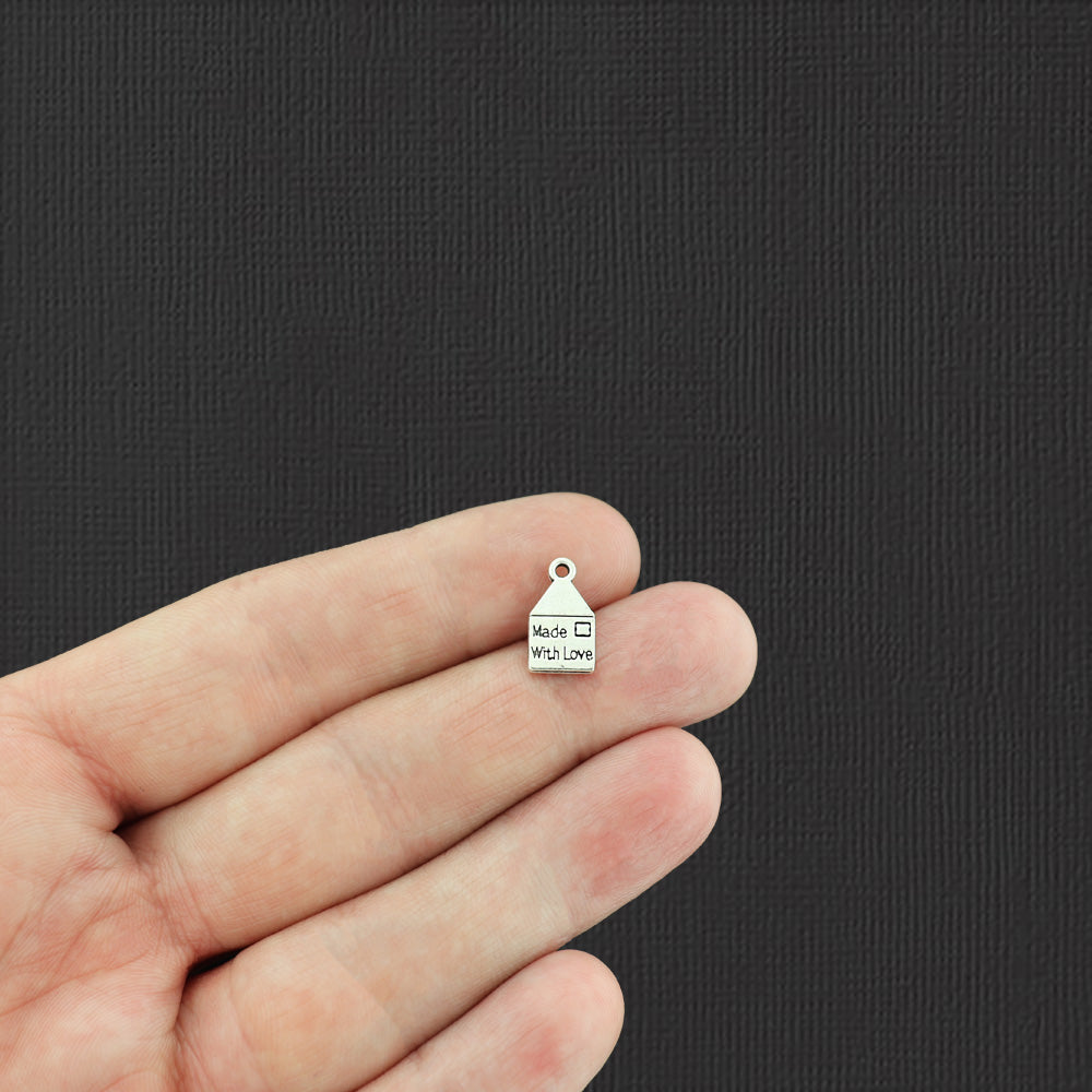 Envelope with "Made with Love" antique silver tone charms, in a zinc alloy metal.