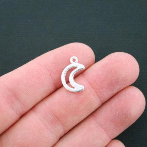Crescent moon silver tone charms, in a zinc alloy metal.