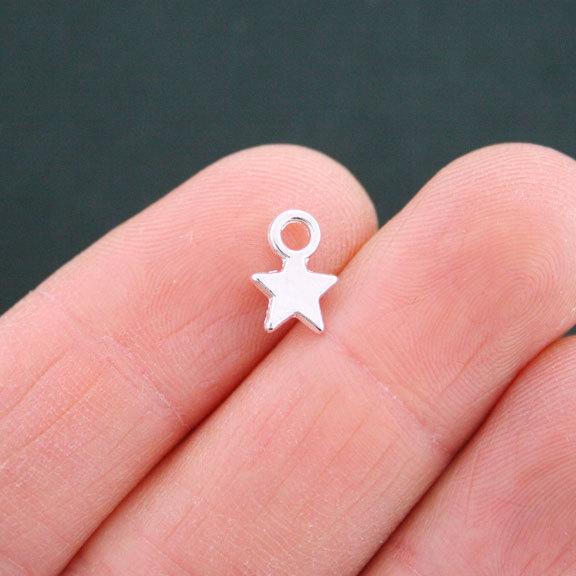 Star silver tone charms, in a zinc alloy metal.
