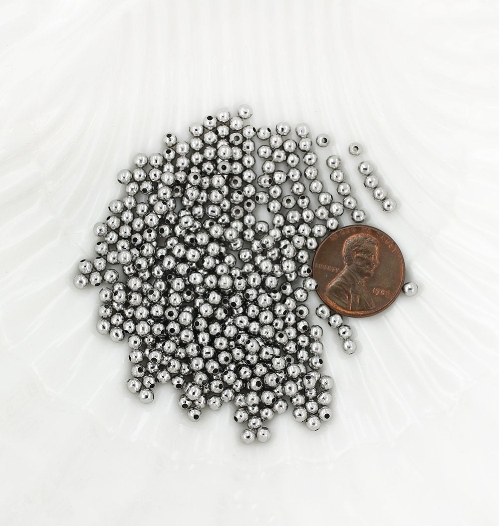 Silver tone stainless steel metal beads in a 3mm spacer, with a metallic finish.