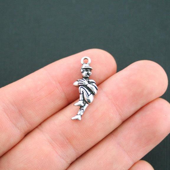 Baseball pitcher antique silver tone charms, in a zinc alloy metal.