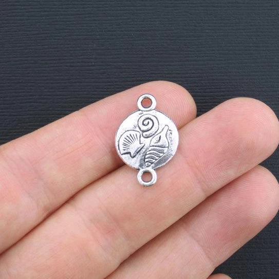 Sea shell connector antique silver tone charms, in a zinc alloy metal.