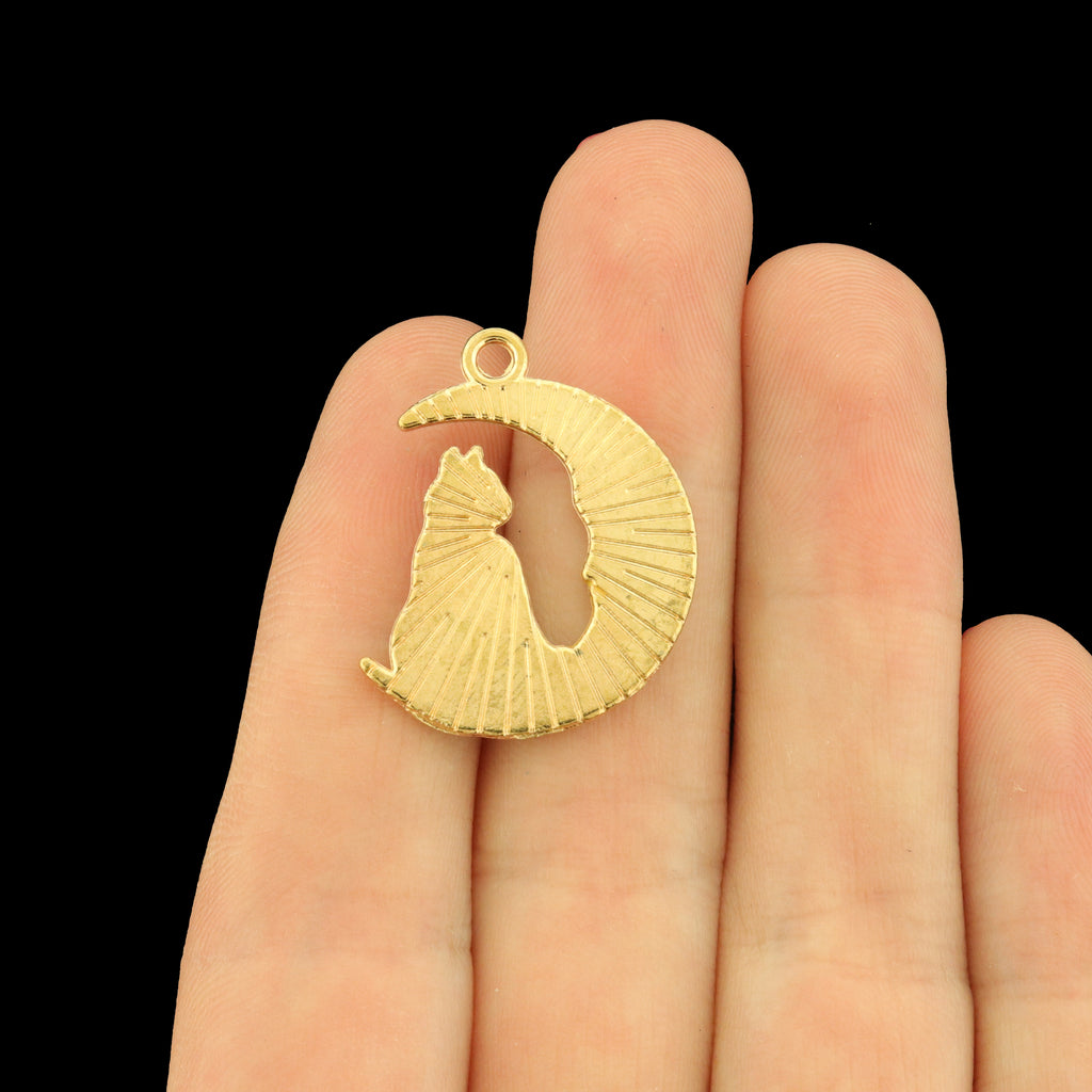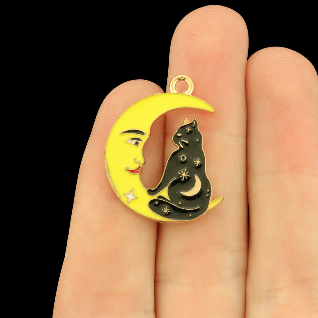 Take a look at these cute celestial black cat charms.. the cat is sitting on a crescent moon! They are made of alloy and finished with yellow and black enamel.