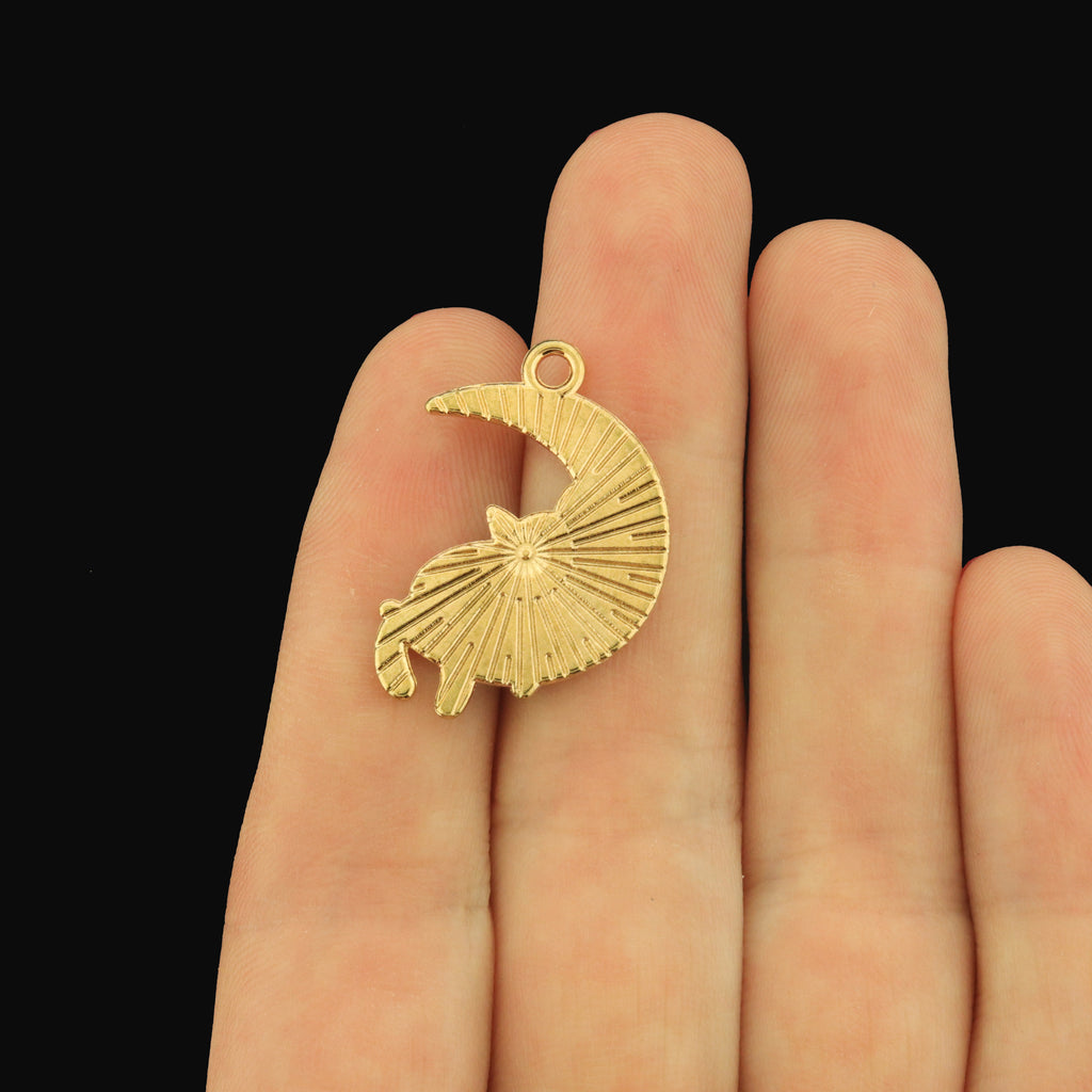 Take a look at these happy black cat charms.. the cat is lounging on the moon! They are made of gold tone alloy and finished with white and black enamel.