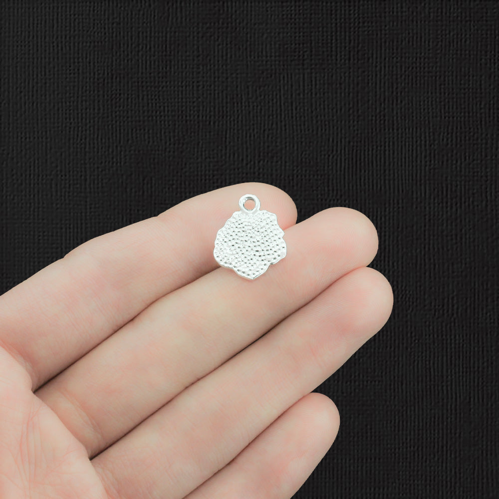 Rose silver tone charms, in a zinc alloy metal and enamel.