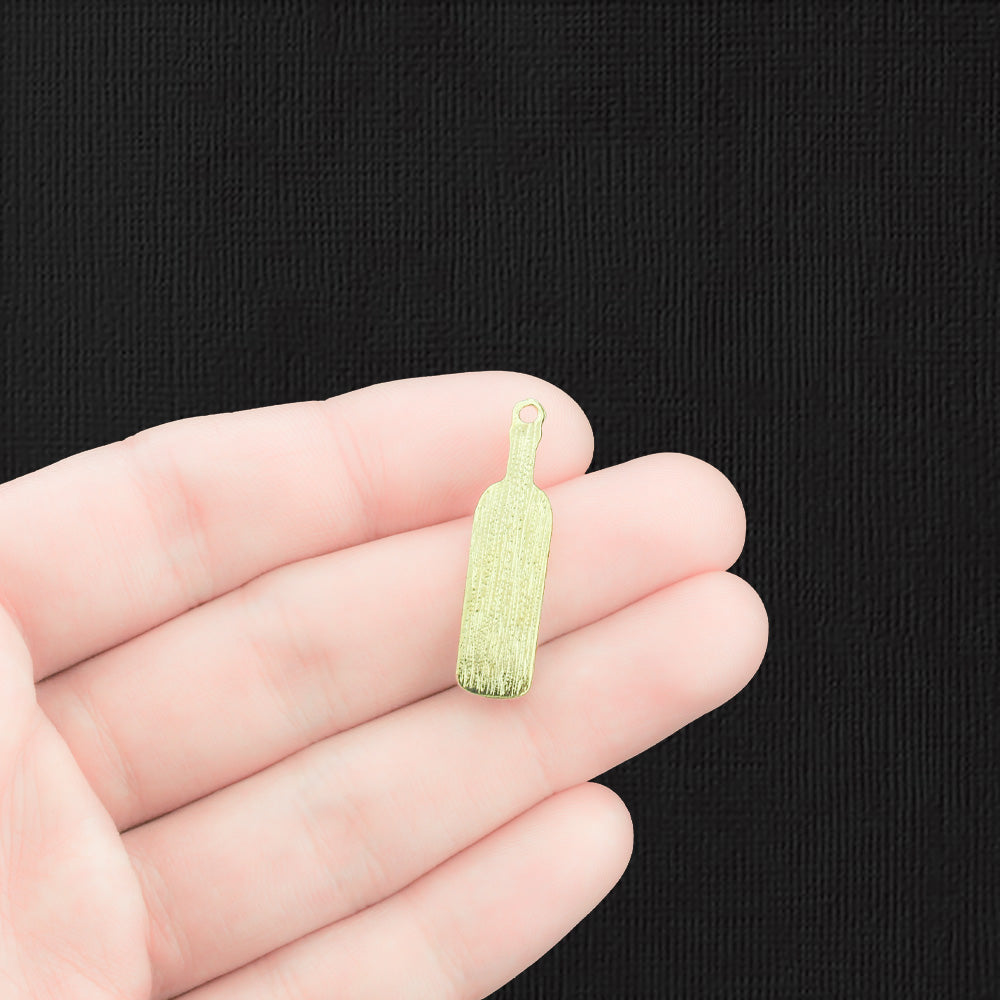 Wine bottle gold tone charms, in a zinc alloy metal and enamel.